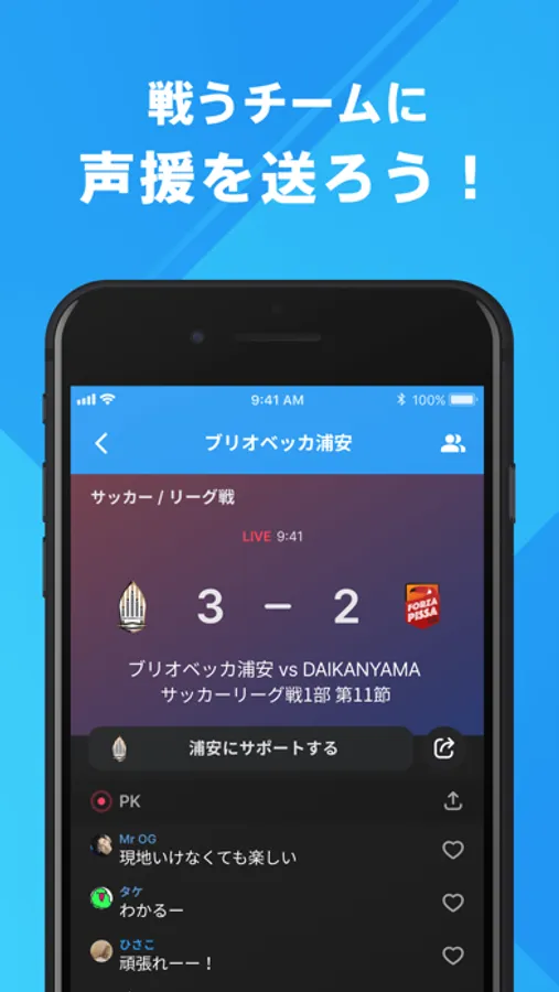 アプリを通じて、チームとの距離がぐっと近くなる。仲間が増える。チームをもっと好きになる!