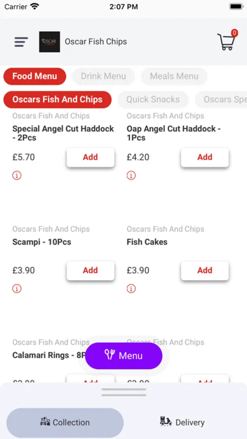 We offer traditional Fish and Chips including Italian Pizza, Burgers, Kebabs and Calzone. Moreover, a variety of Ice Cream, Set Meals for Kids, Chippy Boxes and Munchy Boxes.