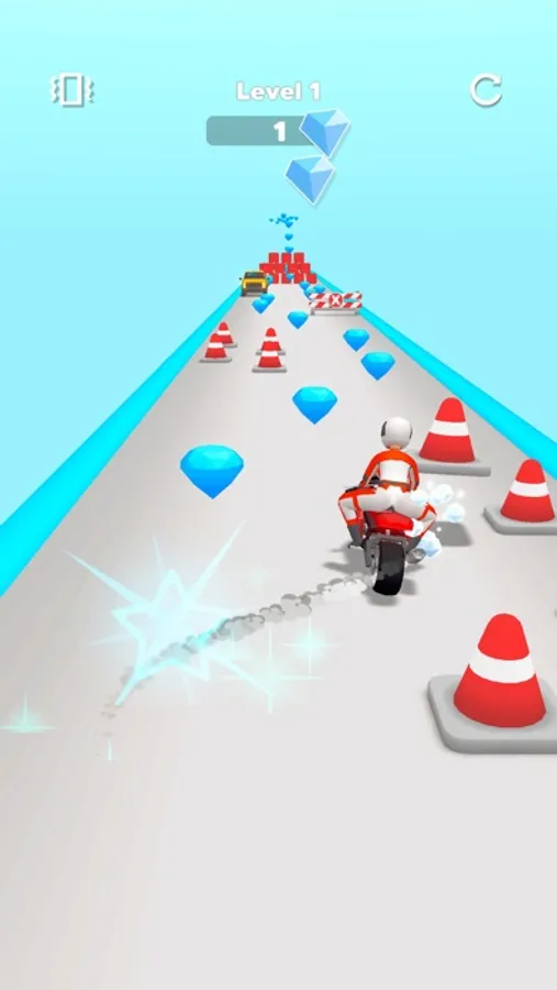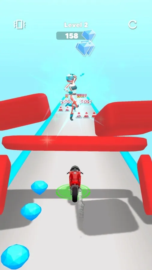 While your driver is collecting diamonds in the air, try to collect diamonds on the ground with your motorcycle at the same time!