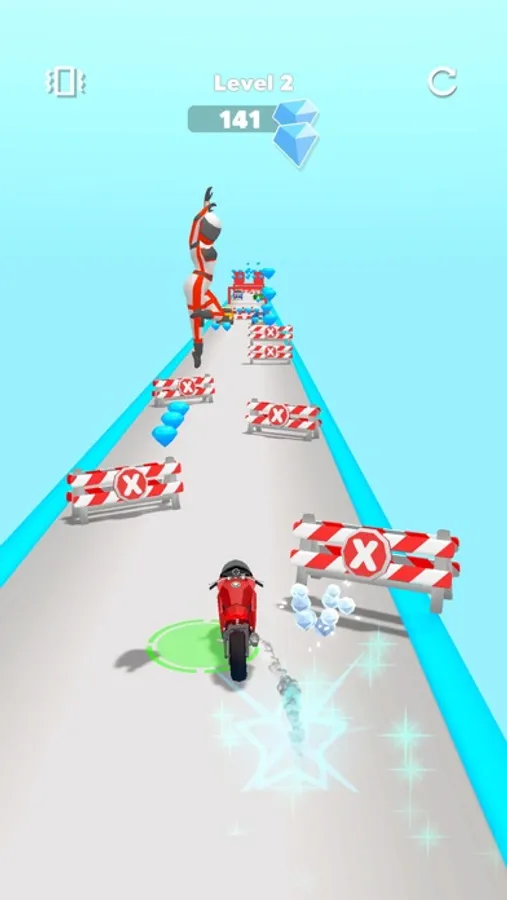 Get ready to play a unique game on motorcycle. While you can move your motor freely left and right with one finger, when you release your finger, the rider jumps into the air. Thus, you will avoid hitting some obstacles and you will also have the opportunity to collect many diamonds. While the driver is in the air, you still have control of the motorcycle and you can make any maneuvers you want on the road.