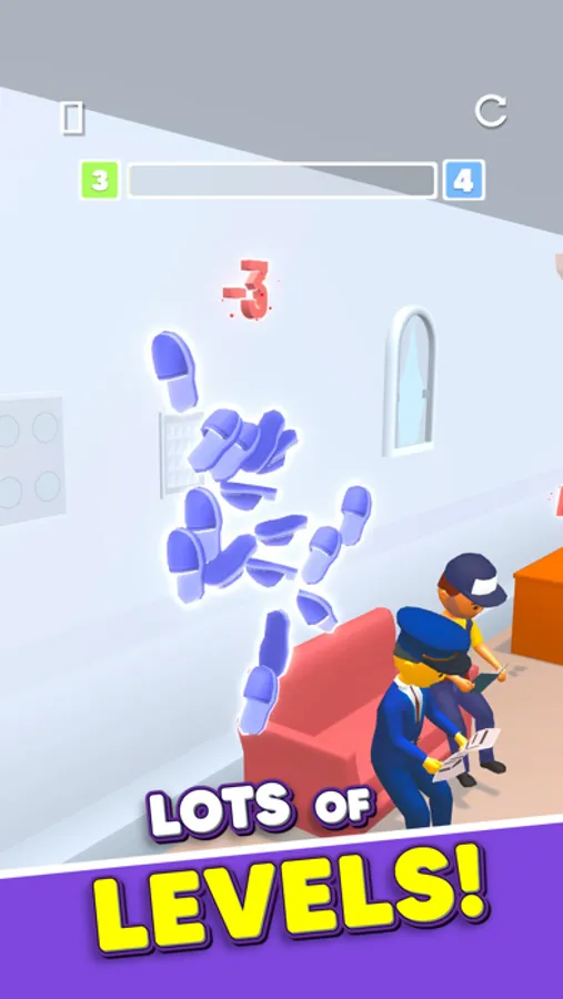 The mother pulls her slipper to thief when she gets angry and throws it with all her might. At this point, the control passes to us. Keep jumping your slippers on the road until you catch the thief and punish the thief for his mischief. Other people playing console games on the way, dad reading newspapers and magazines, and other guests can get their share of your wrath. There is no problem in this, as long as at least 1 slipper reaches the thief.