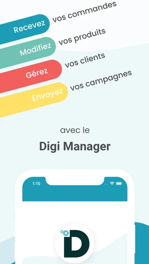 Téléchargez le Digi Manager et connectez-vous à l'aide de vos identifiants Digicommerce pour administrer votre boutique en ligne.