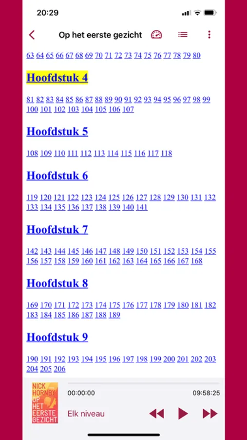 Verder kunt u bladwijzers plaatsen, zodat u passages gemakkelijk terug kunt vinden. De lijst van bladwijzers vindt u bij de inhoudsopgave. Aangemaakte bladwijzers verwijdert u weer eenvoudig. De Passend Lezen-app onthoudt bovendien per titel waar u bent gebleven. Zo luistert u gemakkelijk verder vanaf het punt waar u gebleven bent.