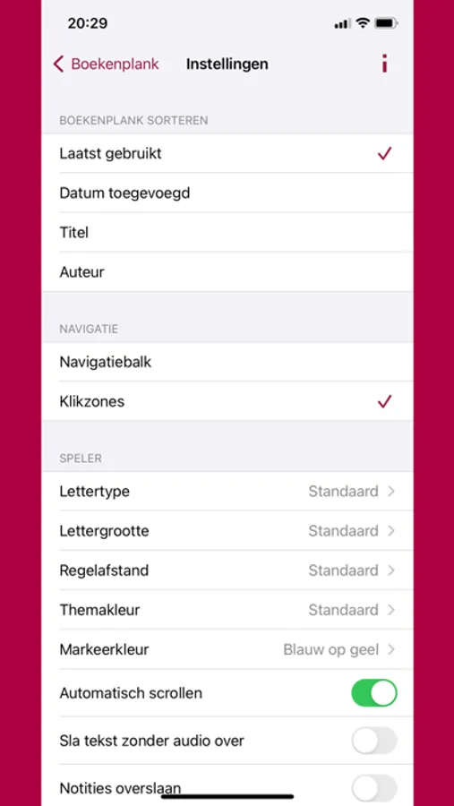 De Passend Lezen-app is volledig toegankelijk via VoiceOver en heeft eenvoudige bedieningsknoppen.