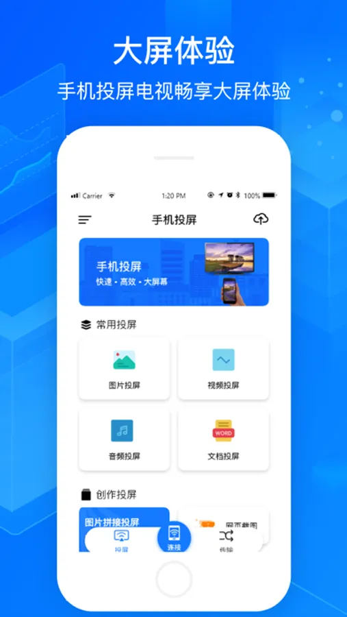 我们支持将图片、视频、音频、文档等多种类型进行投屏,感受大屏体验。