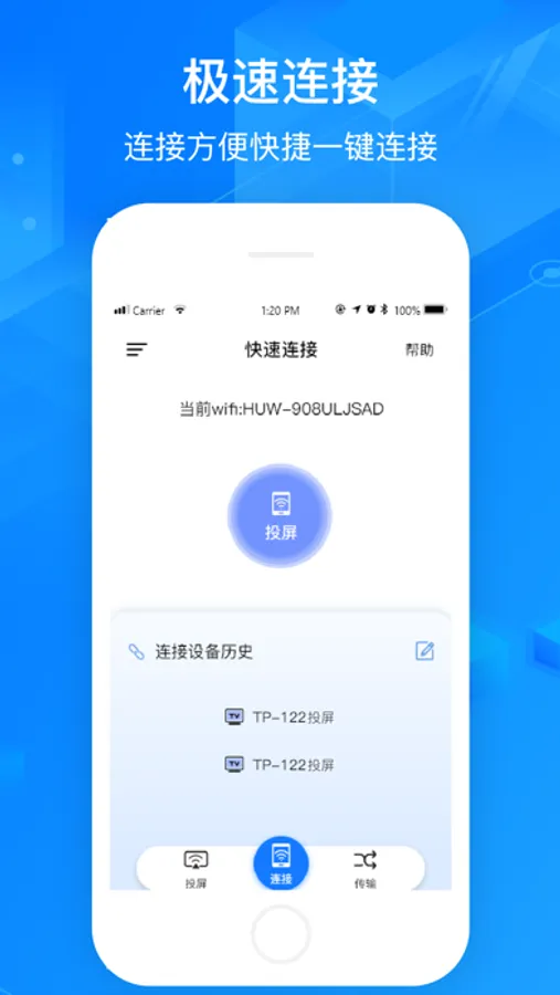 只需将电视与手机处于相同的网络下可立即连接,即连即用。