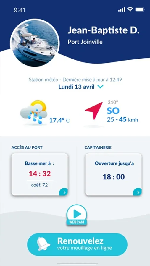 Nouvelle application réservée aux plaisanciers du port du Joinville - Ile d'Yeu. Un contrat avec le port est nécessaire.