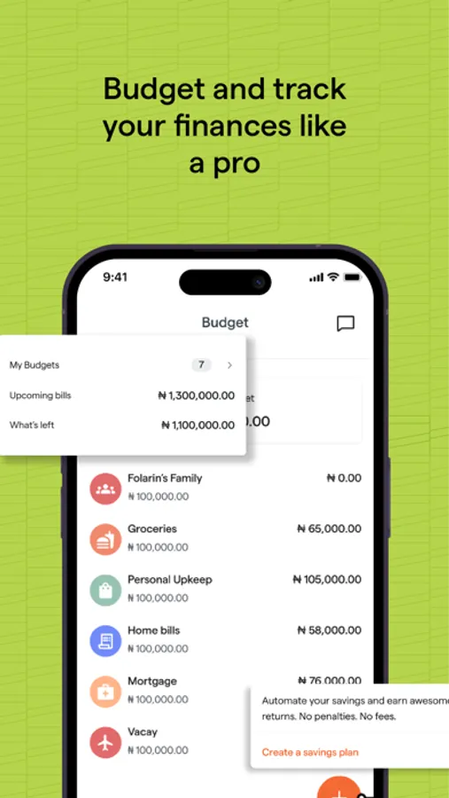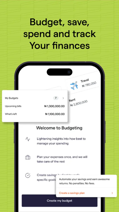 Manage your finances better as a working professional with our budgeting feature. With it you can budget, save and track short and long term expenditures e.g. vacation, house rent, family building, wedding etc.