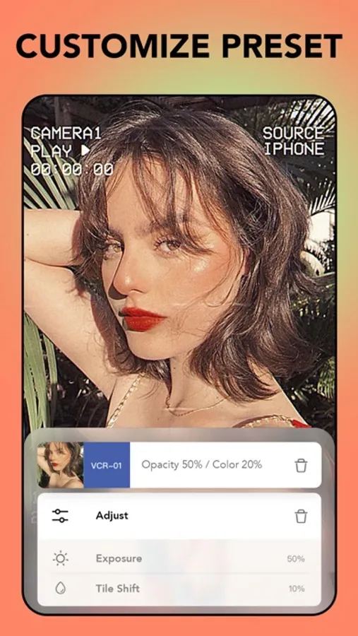 Free to adjust grain, vignette, exposure and contrast to meet your requirement of perfection.