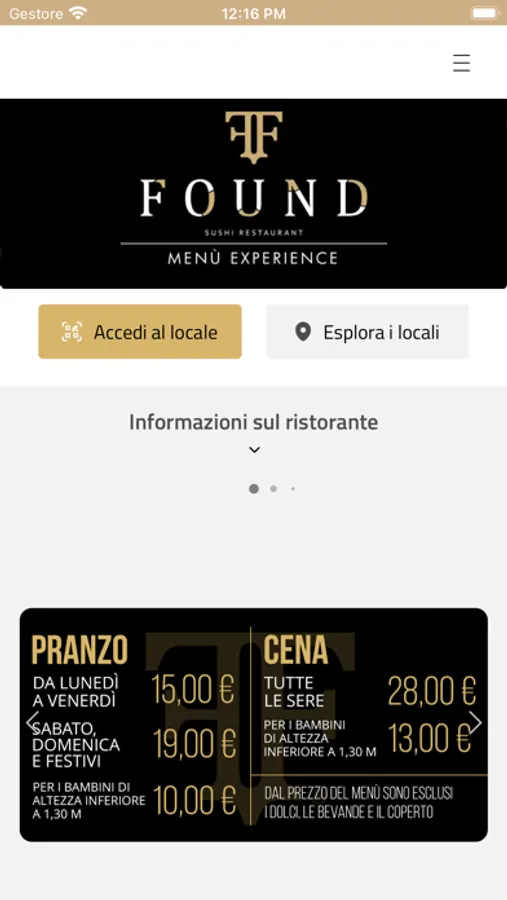 Grazie a questa App il tuo ristorante preferito sarà sempre con te, a portata di mano sul tuo smartphone. Scarica l’App di Found Sushi Restaurant e scopri l’esperienza unica della nostra prelibata cucina fusion: Taste the Emotion! Cosa puoi fare grazie a questa App: