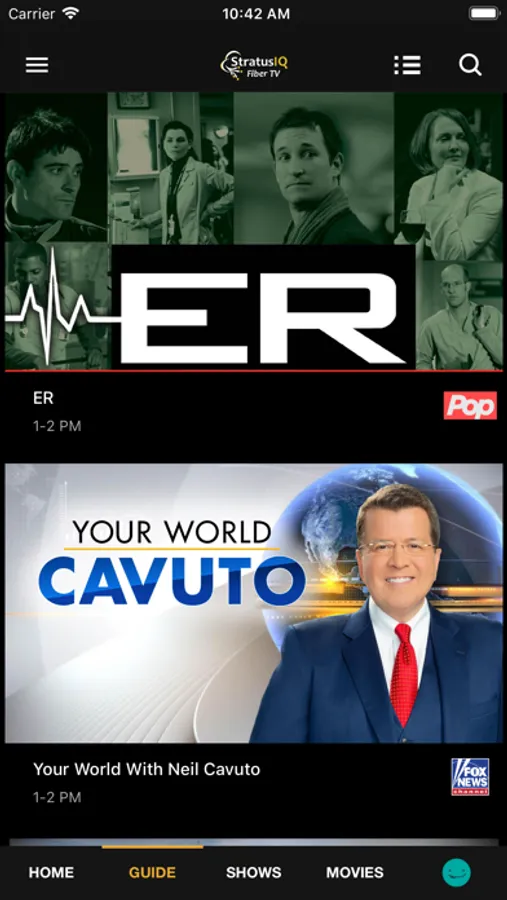 StratusIQ Fiber TV is a streaming TV service available exclusively to StratusIQ High-speed Data customers. Watch TV how you want, anytime you want using your favorite mobile device or TV without the need for a set top box! Amazing features include: * Live linear channels * Video On-Demand Content* Cloud DVR - with options up to 300 hours of recording * High Definition broadcasting * Local and regional Sports channels included