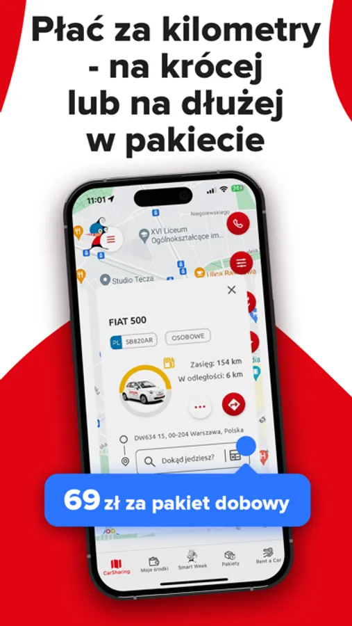 2. Wybierz samochód na mapie w Twojej okolicy i ruszaj w drogę!