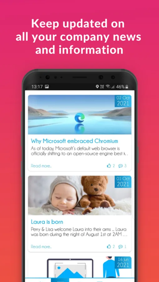 Easily manage your meetings and emails. Read, like and comment on your corporate news in just a few seconds!