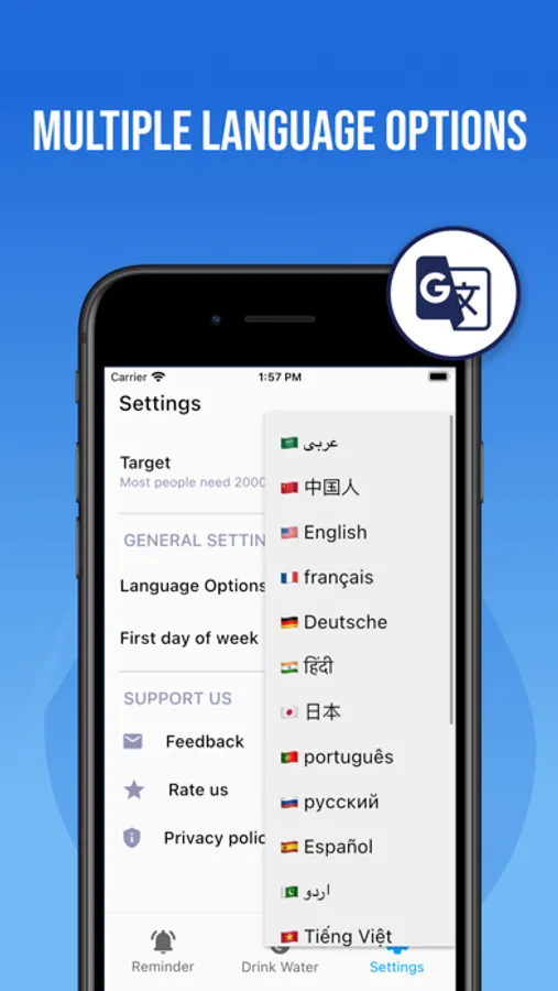 It will help you calculate how much water should you drink per day. You can also track water history, reach your daily goal to open the respective achievements, and many other useful functions, Water drinking reminders will help you build a good habit with a healthy body.