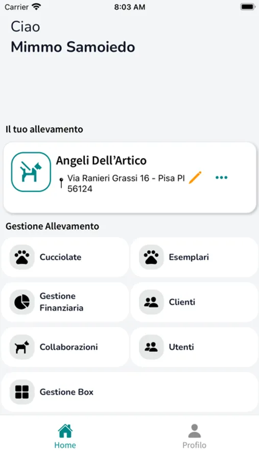 Gestisci la lista clienti, assegna i proprietari ai cuccioli.