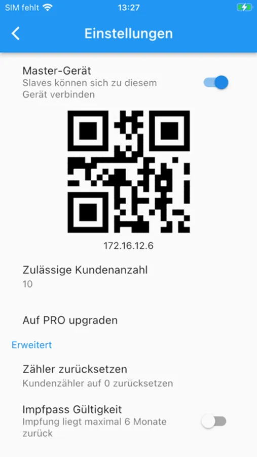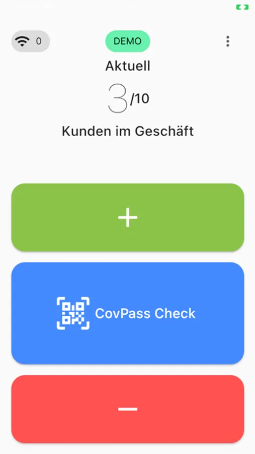 Dank integriertem Zertifikatsscanner ist es möglich über die integrierte Kamera ein Impf-/Genesenen-/Test-Zertifikat zu prüfen. Bei erfolgreicher Prüfung wird der Gast / Kunde gezählt.