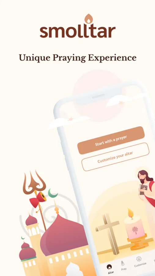 Smolltar is a one-stop prayer app that allows you to create a divine praying altar where you can connect with your God or Goddess.