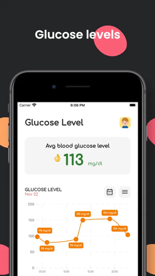 Control your blood glucose level and how much carbs you eat, track your glucose measurements and average blood sugar, and a lot of smart choices.