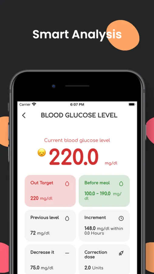 Set minimum and maximum target range of blood glucose and let "Jidaa App" analysis your glucose level measurement.