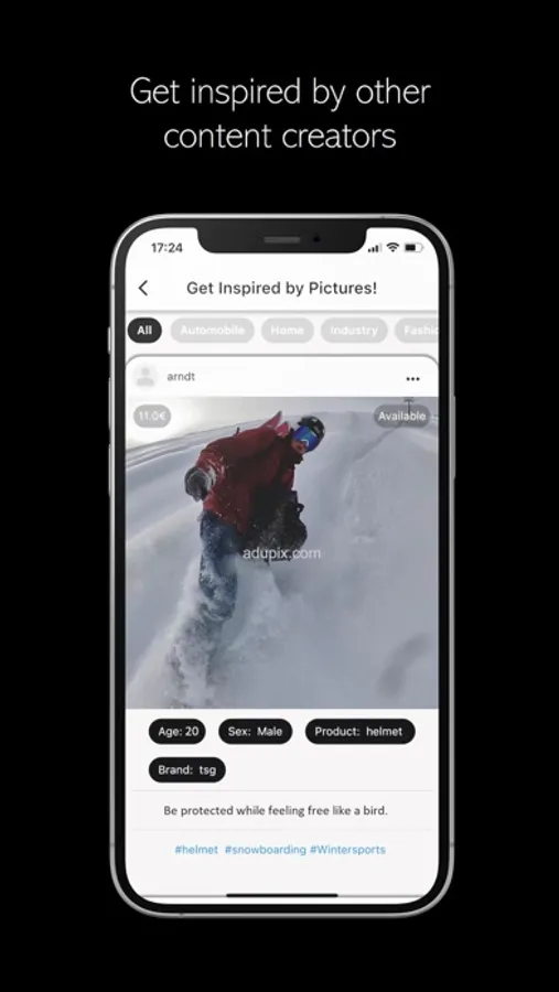 Adupix offers you as a content creator, influencer or model the opportunity to sell your content to companies for their next promotional post. A platform where you can get inspired by other creators, work on assignments and sell your best content. As long as a brand is in focus and high quality is given, your content is of great value for brands.