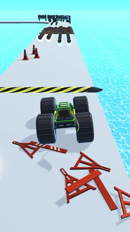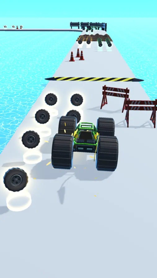 Pass through gates which inflate your tires, making it easier to get through the thick mud on the course. You need lots of tire pressure to get through, so keep an eye on those wheels!