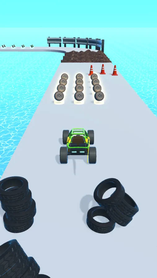 You can also switch between smooth racing slick tires and deep treads by picking up items. Check the road ahead and adjust your tires on the fly so Muddy Buggy uses REAL vehicle physics. Feel the movement of the suspension as your buggy slides through mud and rolls over obstacles.