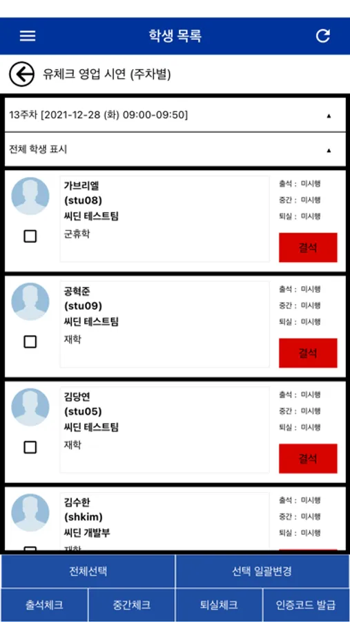 백석대학교에서 사용하는 스마트출결 앱으로 교수용입니다.