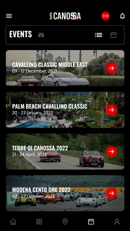 Inside you will find interesting news on the driving events’ world and a selection of extraordinary road-trips. Moreover, you will be able to register to our experiences, take a look to a selection of dedicated pictures and update the cars in your garage.
