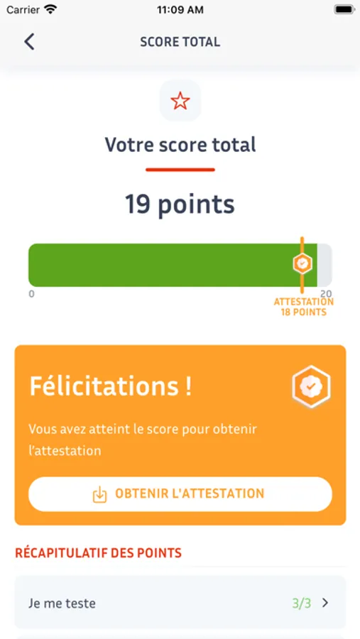 Répétez les activités autant de fois que nécessaire pour obtenir l'attestation.
