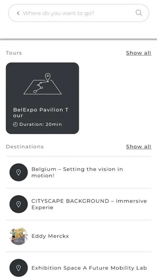 This App has been designed especially to allow the visitors of the Belgian pavilion to have a guided tour with the help of the 3D avatar. Users can have a guided tour of the whole pavilion by getting information regarding each point of interest in the pavilion.