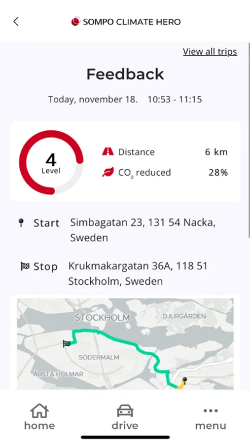 Sompo Climate Hero is a connected car driving app - accessing the benefits of the world’s most powerful AI analysis of a car driving. The app works with your phone connected to the car and provides real time risk scoring while driving, post driving trip logs and trip drive coaching. All to improve car driving to a better experience while also creating a healthier road environment.