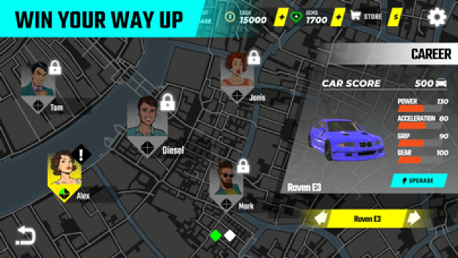 * Career - unfold the story & beat pro drivers to take over the city