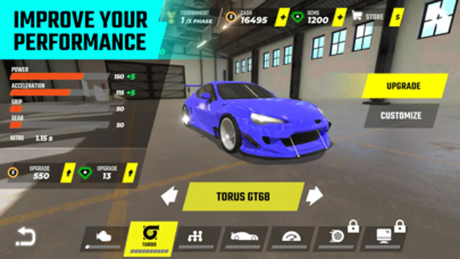 Personalize your car through a wide range of realistic & vivid car paints such as metallic, pastel, pearl, matte. Make use of 7 powerful & realistic upgrades that will boost your cars to the next level. Each upgrade influences one of four base stats. Configure your cars and get the edge to take on your opponents!