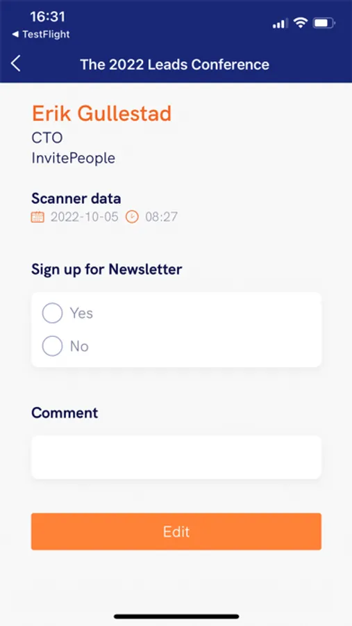 Use the InvitePeople Leads app to scan QR-codes on nametags. Make sure to collect information about the people and the potential customers you meet at the event. Create an amazing list of contacts in one place.