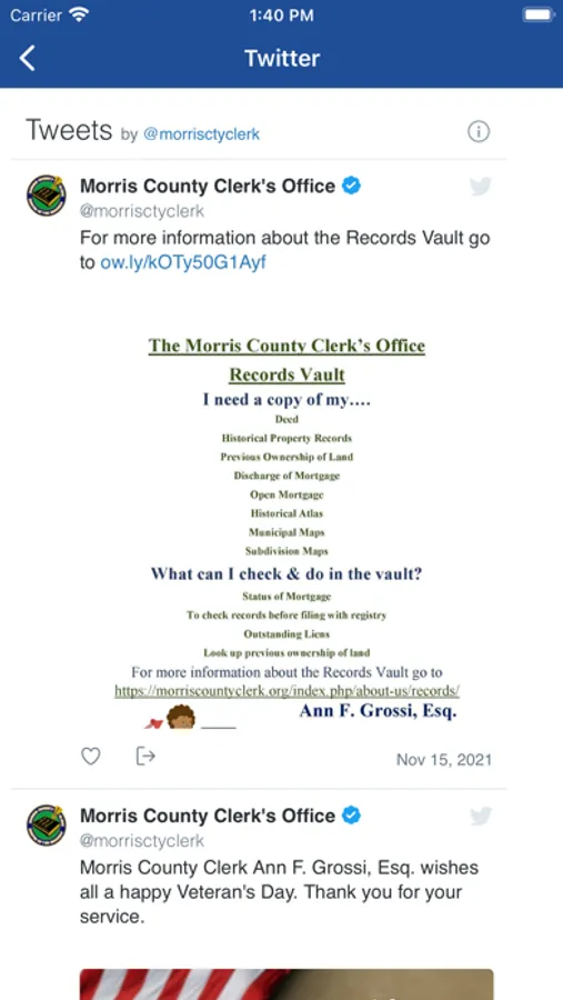 The County Clerk’s app allows users to navigate through the services our office provides. These services include election information and results, passport information, passport online appointments, notary services, our records vault, and more.