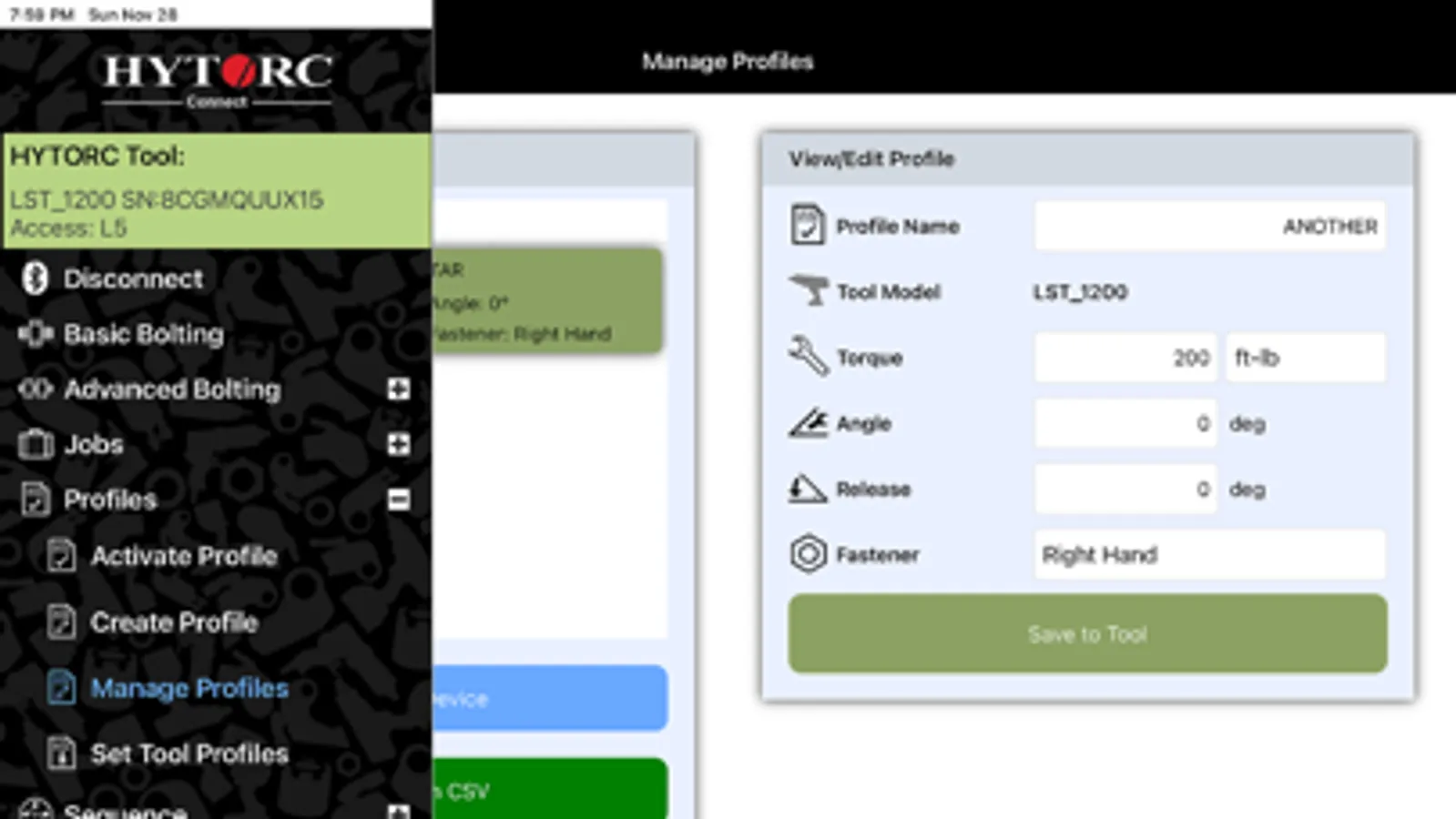 The HYTORC Connect App provides wireless configuration and data exchange for Bluetooth® enabled HYTORC Electric Torque Tools, simplifying and speeding up bolting operations while improving safety and job accuracy.