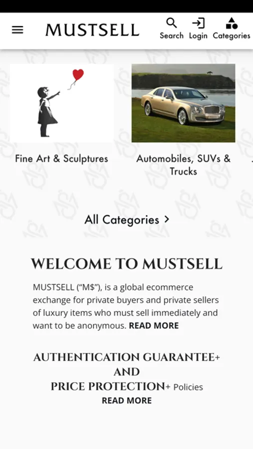 MustSell (“M$”), is a global ecommerce exchange for private buyers and private sellers of luxury items who must sell immediately and want to be anonymous.