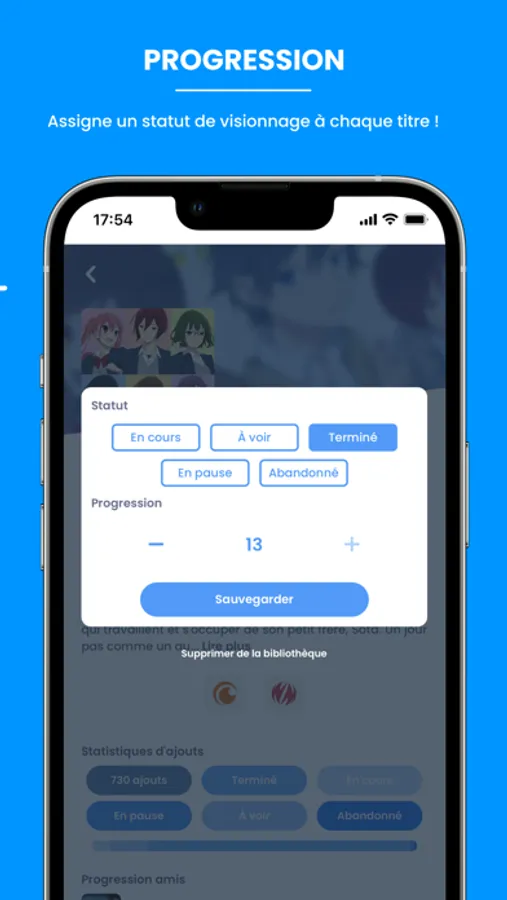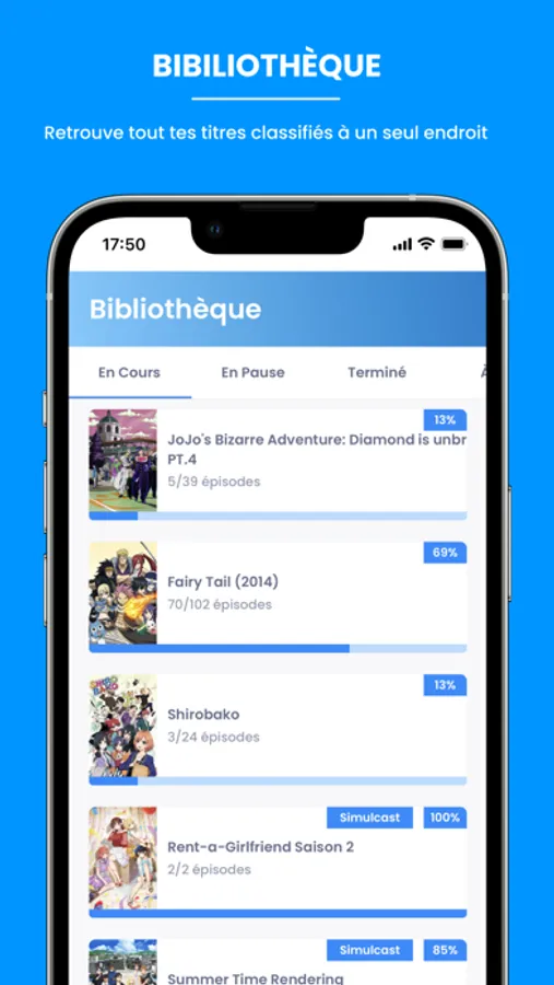 - Ajoute des animes dans ta bibliothèque pour suivre ta progression.
