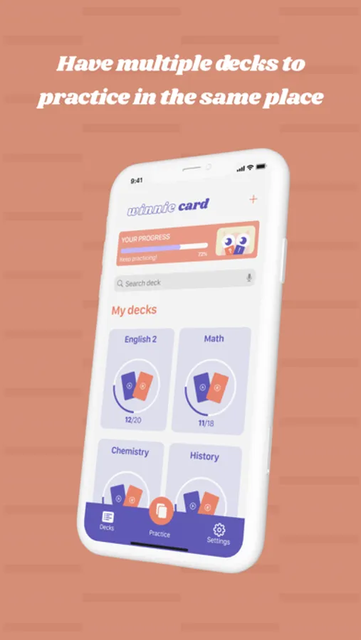 With Winnie Card you have a quick practice button, for that moment you don’t want to choose which deck you want to practice and skip just for the important part. Also, Winnie Card shows you which decks you have to practice more and which ones you've already memorized.