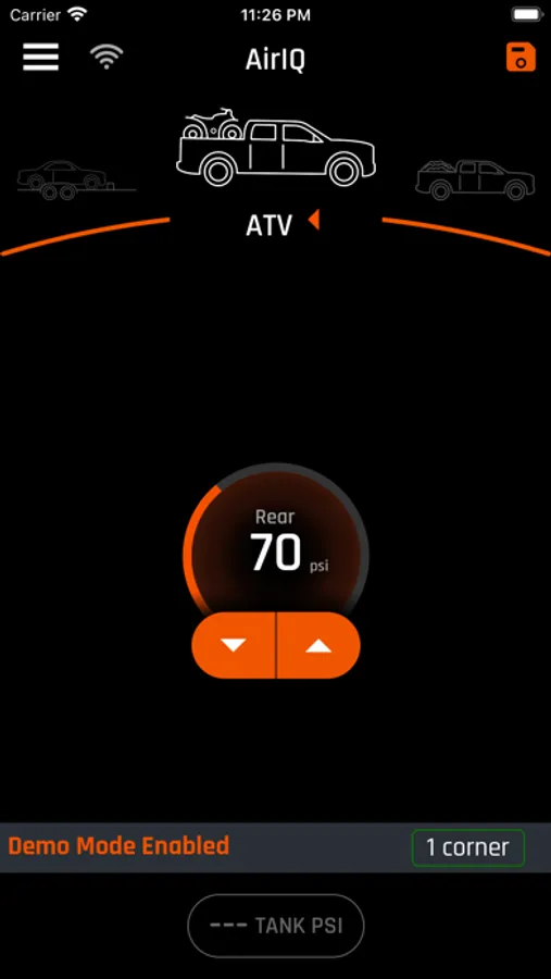 Connect to your AirIQ air suspension system via BLE for full control over your air springs with visibility of air spring pressure, control of preset pressures and easy ability to save new presets or adjust your system settings. The AirIQ App also provides OTA (Over The Air) Updates to make sure that your AirIQ Air Management system has the latest firmware and features. App automatically configures to the number of installed corner modules for control of 1 through 4 air springs.