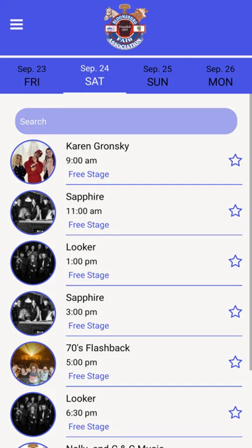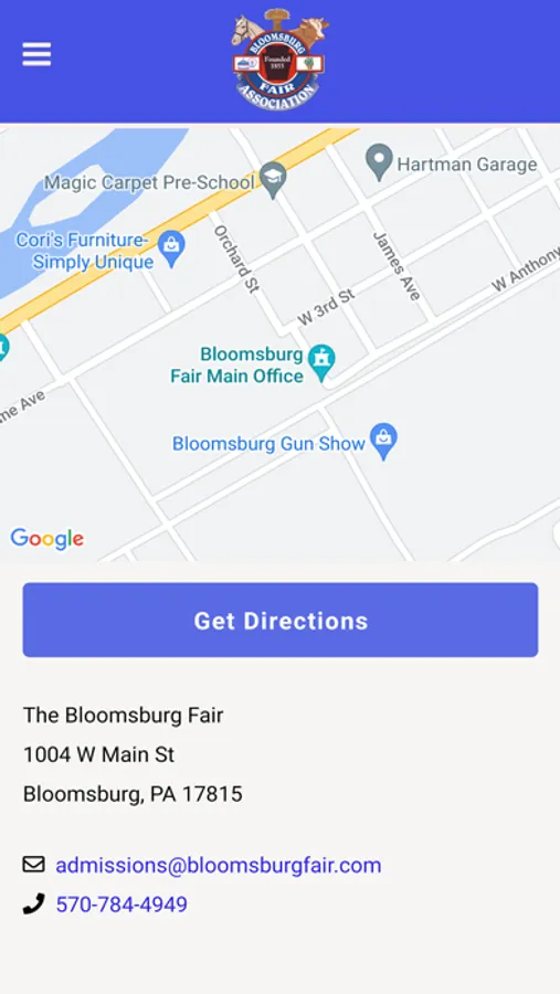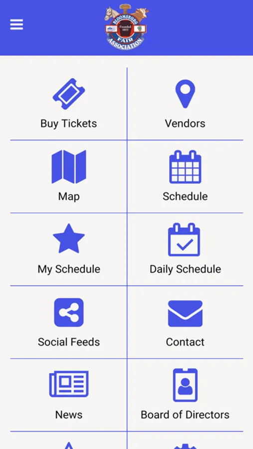 The Bloomsburg Fair App is an interactive GO-TO source for your visit to The Bloomsburg Fair. It will provide up to date events, shows, concerts, judging results, vendors, locations and much more. With 1 touch, you have the fair information at your fingertips.