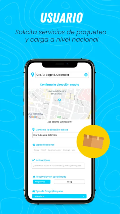 Somos una App de transporte logístico, que permite a los usuarios y conductores tener una experiencia distinta al momento de enviar o transportar mercancía a nivel local o inter municipal, teniendo como objetivo principal la posibilidad de elegir el momento de recogida del paquete, el lugar, ofertar el costo por el envío y acortar el tiempo de recogida, ya que contamos con una base de datos de conductores, dispuestos a llevar tus paquetes a dónde sea necesario.