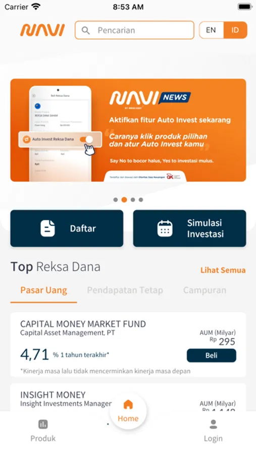 Investasi bukanlah soal coba-coba. Kalau kamu mau jadi smart investor yang melek soal investasi pastikan pakai NAVI karena kami menghadirkan berbagai fitur dan produk investasi untuk membantu meraih tujuan finansialmu.