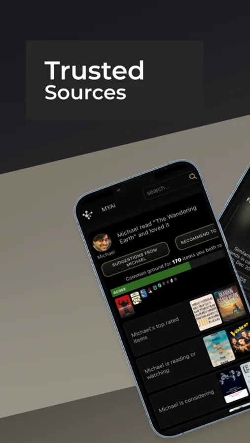 • discover and curate what to read and watch next based on your trusted sources - the people that matter to you - your family, friends and people similar to you;