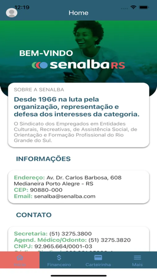 Este aplicativo Senalba é destinado aos nossos sindicalizados. No aplicativo você terá acesso a as questões financeiras, como acompanhar a relação de pagamentos e conseguir baixar boleto em aberto. Também é possível conhecer um pouco mais sobre a Senalba, endereço e informações de contato, além da carteirinha virtual e dados de cadastro com a Senalba.
