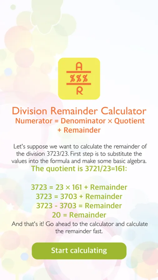 With this calculator you will be able to discover the remainder of a division, let's talk a little about of what the remainder of a division is.