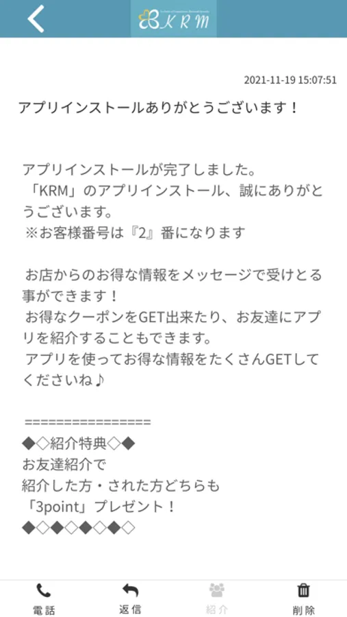 K.R.MのアプリをSNSを通じてお友達に紹介する事ができます。