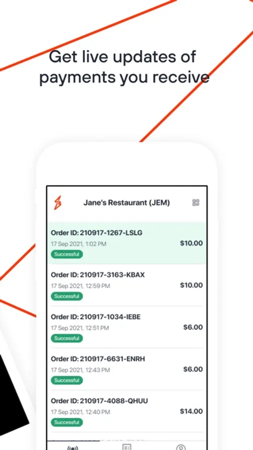 • Get real-time updates when customers pay you by scanning the QR code in your store.
