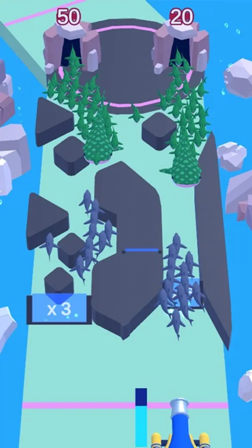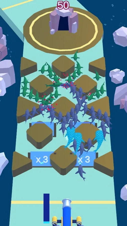 Your sharks get incredibly numerous and powerful by passing through gates and devour hordes of enemy sharks.