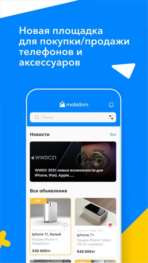 Mobidom — современное приложение для покупки/продажи мобильных телефонов и аксессуаров.